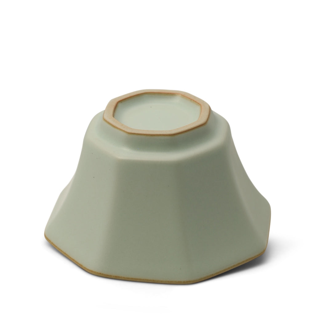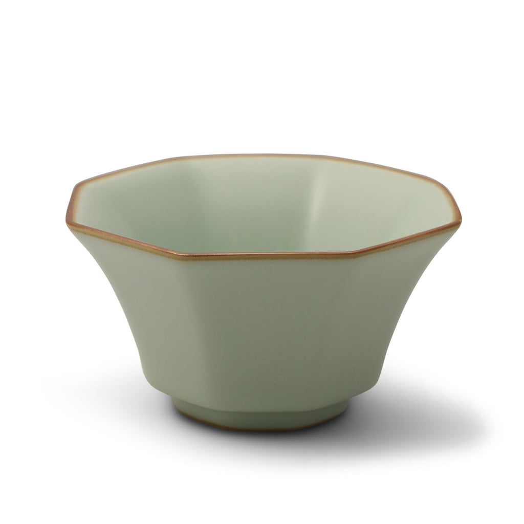 Although unmistakably shaped with the precision of an artisan’s hand, this tulip-shaped celadon cup doesn’t try to impress with flamboyance. Its quiet confidence lies in its subtle octagonal silhouette, crowned by a fine brown rim that gently frames the pale green glaze. A classic example of celadon ware, it reflects the Chinese taste that, for centuries—from the Song dynasty well into the Ming—favored the tranquility of monochrome finishes.