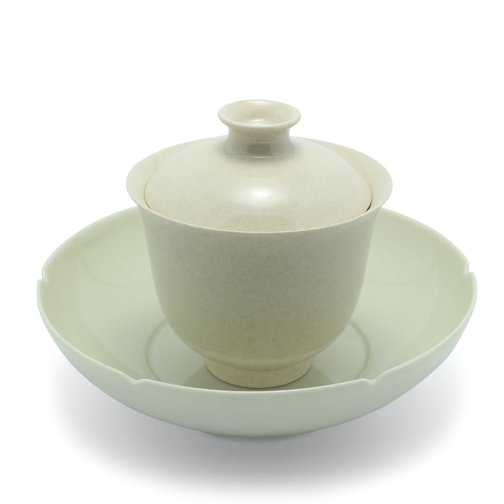 A simple tea boat in an ecru colour that will catch any wayward drips, splashes, or spills. The deep plate is notched to suggest a flower that will cradle the brewing vessel of your choice within its ceramic petals, drawing attention to the brewing scene with layers of appreciation. The plate is a speckled sandy hue that is smooth to touch and will complement Duanni or Zini Yixing teapots and darker earthen hues, or return it to its original match: the sandy gaiwan.