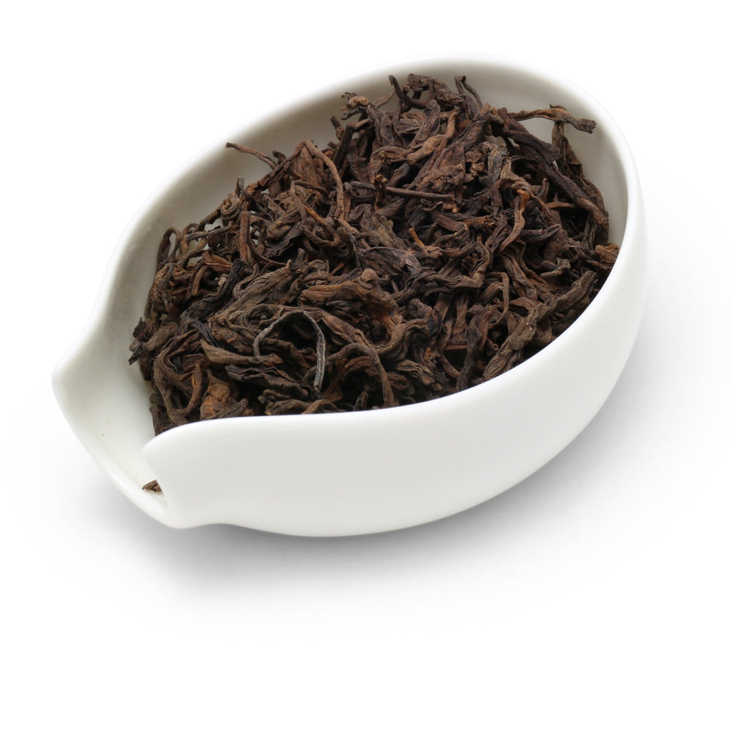 This Gushu Shu Pu’er from Shitouzhai, a region renowned for its high-quality post-fermented teas, stands out in two ways. First, it isn’t pressed into a bing but offered in loose-leaf form, which allows the tea to air out more quickly after the wet-piling process (渥堆; wo dui). Second, the caramel-brown leaves reflect traditional fermentation techniques from the 1990s—now quite rare to encounter. Guided by a veteran specialist formerly with the Dayi Pu’er Tea Factory, these methods avoid excessive fermentation, ensuring the tea retains strong potential for future aging.