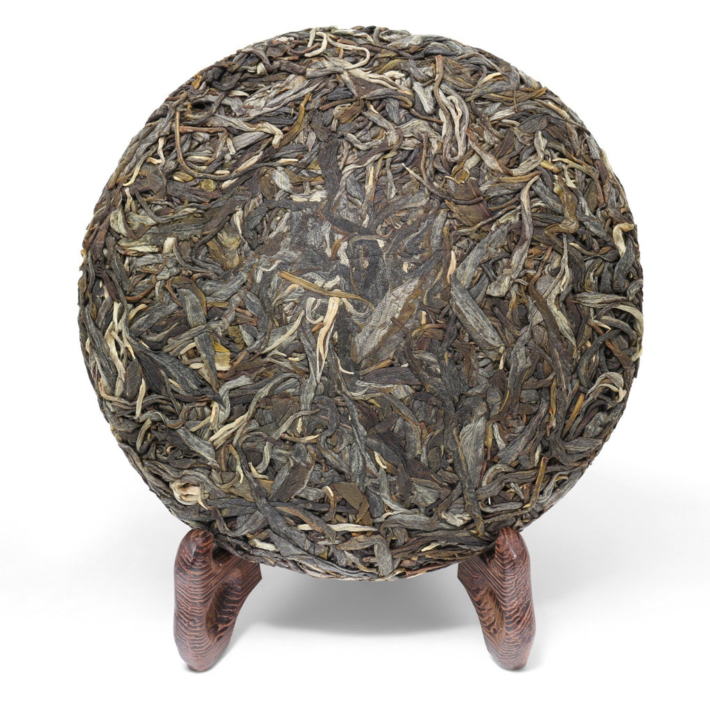 Its processing reflects the classic Menghai style, with a hot and brief Sha Qing that locks in the tea’s vibrant energy. The first cup already reveals its assertive character: tightly coiled bitterness reminiscent of citrus peel quickly unfolds into notes of soft honey and an undercurrent of stone fruit. A marked astringency, typical of Laobanzhang, creates a layered texture in the mouth—intense, yet balanced.