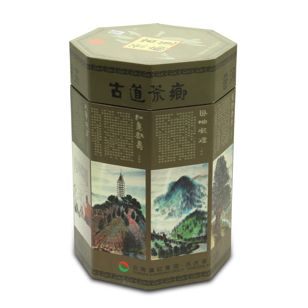 These nifty bing cha of 100 grams each are rich in flavour. Produced by the esteemed Dian Hong Group, most known for the black tea of the same name, it has been named in honour of the old Tea-Horse Road (Chá mǎ gǔdào, 茶馬古道), the trade route between China and Tibet that fermented the tea carried upon it for centuries. Aged as they are in dry storage, the dense cakes seem to have travelled such a journey, with a whiff of fine tobacco smoke, a body of dried red fruit, and the butter of the Tibetan po cha. A quick steeping is particularly recommended, so as to appreciate the subtler flavours. Available both individually, or in a special tong of eight bing cha in a decorative box.