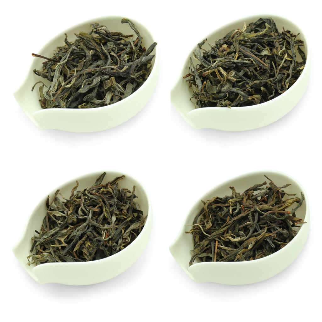 Representing the renowned ‘five Bingdao villages’ two contrasting teas: a sweet, vegetal qiaomu from Nuowu and a complex gushu from Dijie, each showcasing unique facets of this famous area. From the western hillside, there’s a gushu from Xiaohusai, fruity with a touch of pleasant sourness, while the eastern hillside is captured by a mild, elegant gushu from Banuo.