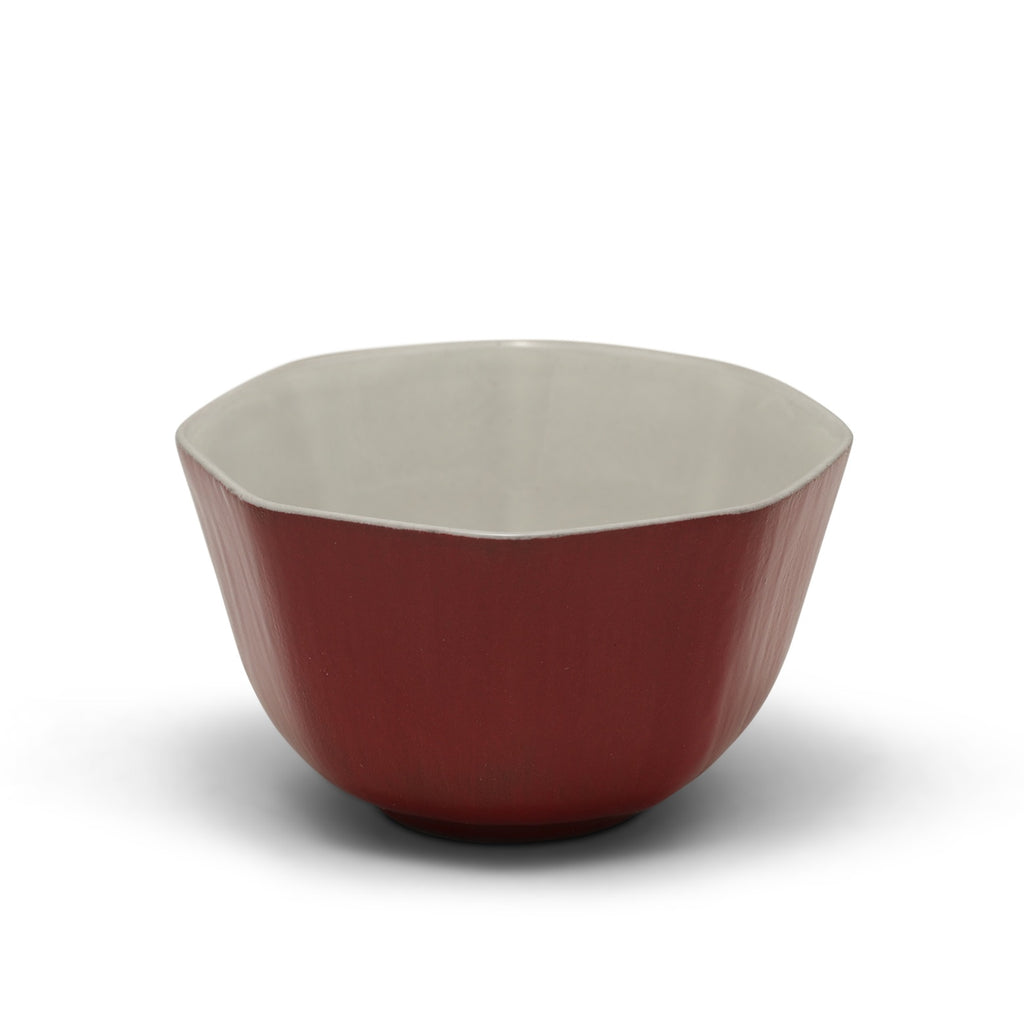 The lacquer red glazing is rich and attractive, and beneath the solid appearance from a distance, subtle ripples keep the surface interesting and hint at the dark underlying material.