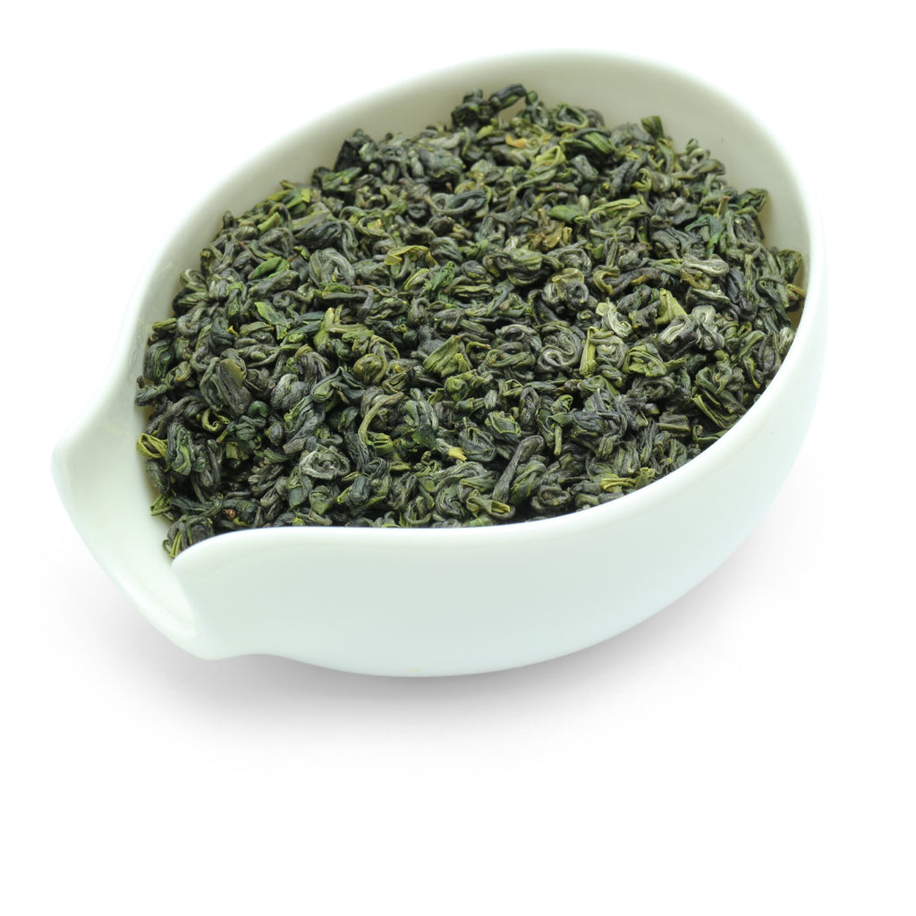 It is by no coincidence that one may recognise the tight curls of the prolific gunpowder green in this tea. This one comes from Shaoxing Prefecture in Northern Zhejiang, the regional hub for gunpowder (zhu cha) production. While most of the tea production here are in large industrial quantities for export, this premium grade demonstrates the finer qualities of this tea-making region. A local tea with a history, Rizhu is not a commonly known tea in China but locally it has been enjoyed for centuries for it brews a soft and savory infusion of pearlescent texture, that contains minerals of dark leafy greens, notes of peanuts, and a slight piquancy of green apples.