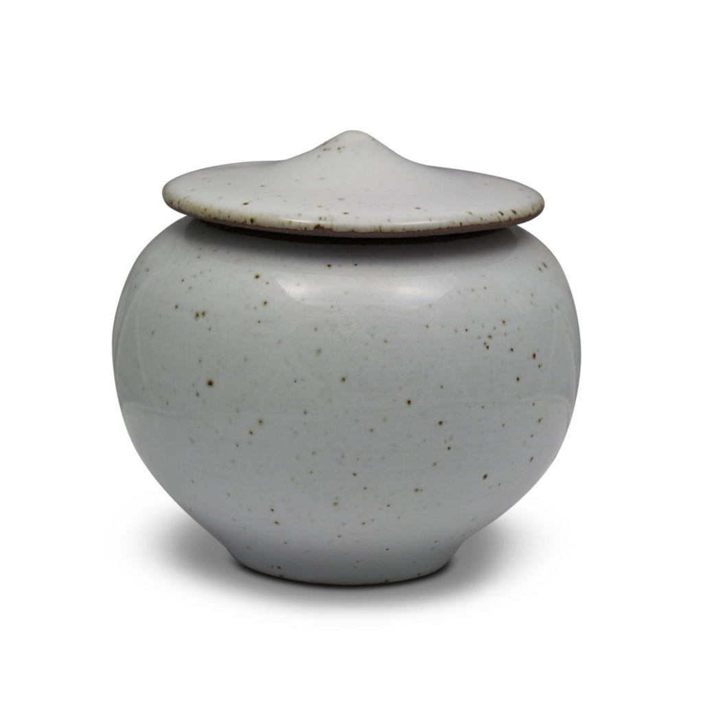 A compact jar perfect for cacheing a precious or special tea, the Quail Egg Jar is reminiscent of nothing so much as a quail egg wearing a cheeky hat, with its glossy dark-speckled white enamel, and features unglazed edges exposing violet-brown clay beneath. Also comes in a handsome slate-grey rippled glaze.