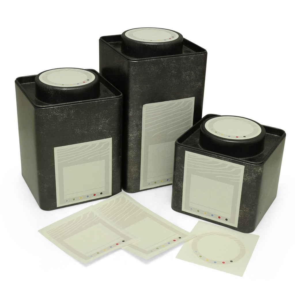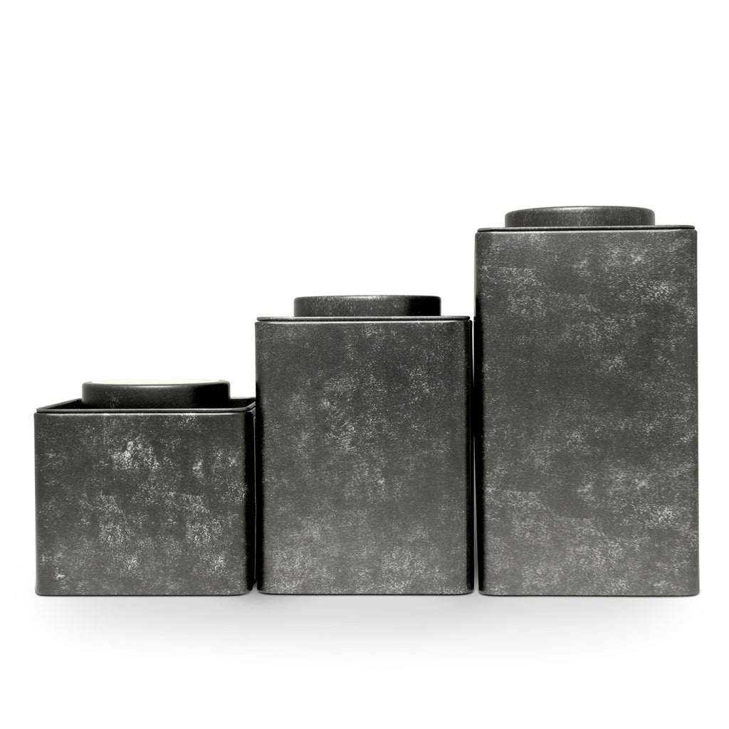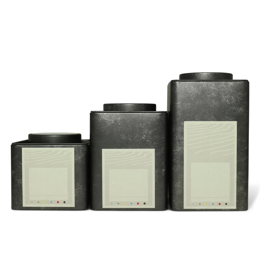 A burnished patina lends a touch of sophistication to these simple tea tins, which even in their smallest form won’t fall short of fulfilling one’s tea storage needs. Sealed away from air and light, valuable tea can rest within the non-porous surface that allows for interchangeable use without transferring odors. Three different sizes suit all kinds of leaves, whether a tightly-rolled oolong or the larger wayward leaves of, say, a Bai Mudan. The secure lid is molded with a circular handle to comfortably pop the top from its fitted body, and each can is provided with blank adhesive labels for the top and side to write in the name and type of its current contents. Arranged side-by-side on a display shelf or tucked away in a drawer, these affordable tins encourage an ever-expanding tea collection in which one won’t overlook that last remaining bit of a special stash.