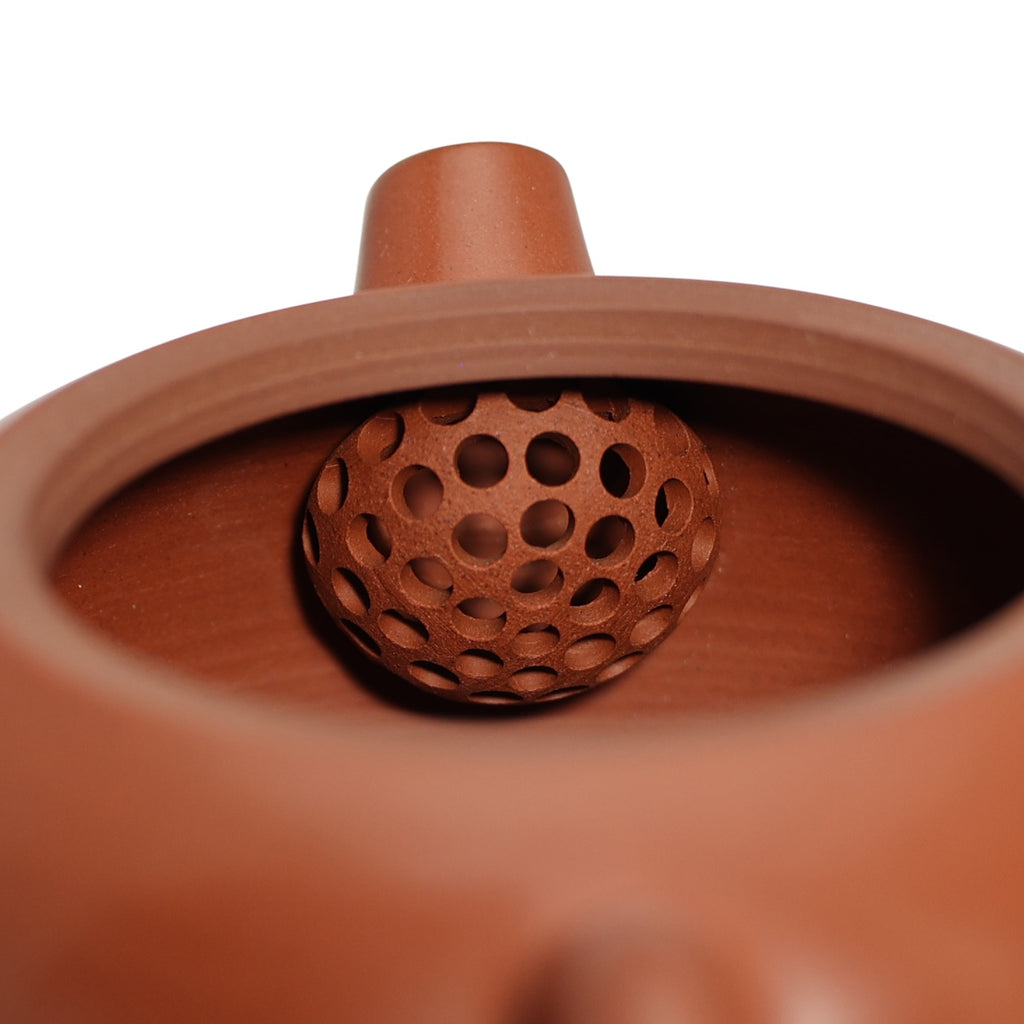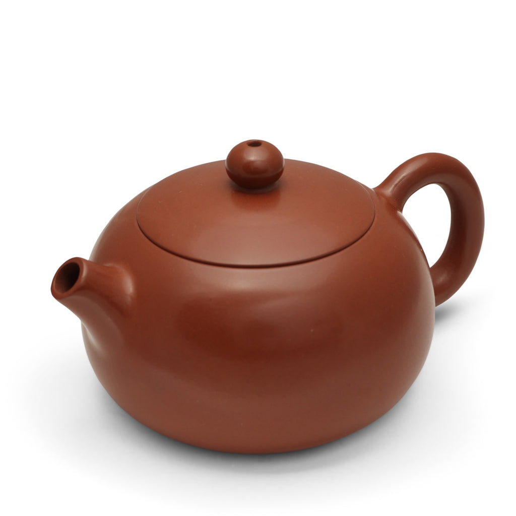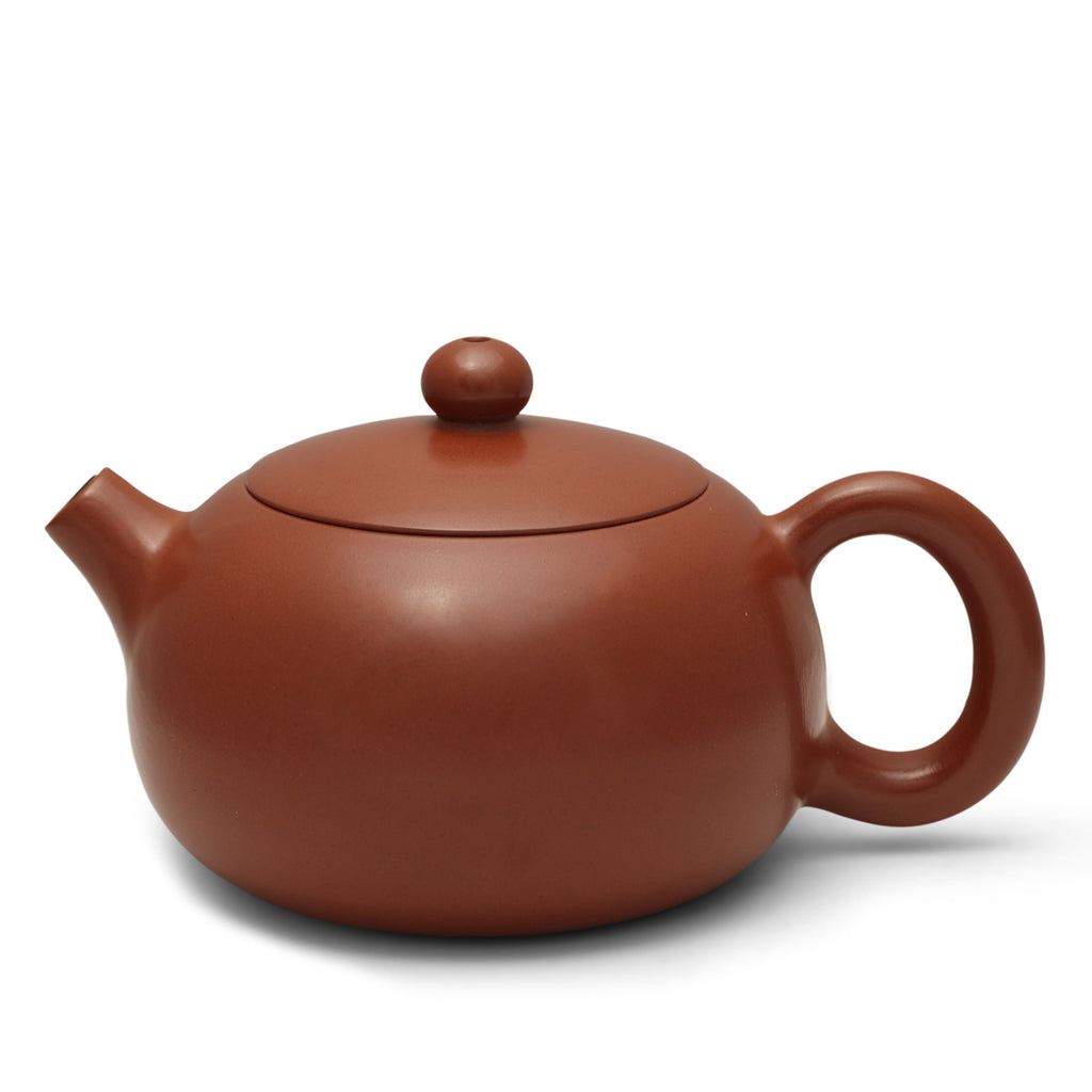 This Xishi-style teapot, crafted from rich Jian Shui clay, embodies elegance and simplicity. Named after the legendary beauty Xishi, this form is arguably the most iconic when it comes to teapots. Its perfectly rounded form and smooth curves create a harmonious balance, which is not only aesthetic, but practical as well. The pot’s compact spout ensures a controlled pour, while the ergonomic handle offers a comfortable grip. The minimalist design highlights the natural beauty of the clay, making it a refined choice for everyday tea brewing.